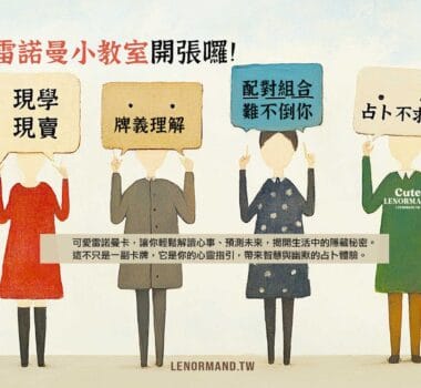 雷諾曼是一套簡單直覺的占卜卡,圖片貼近生活、好記好懂。 點選按此占卜,看看今天的驚喜訊息!>