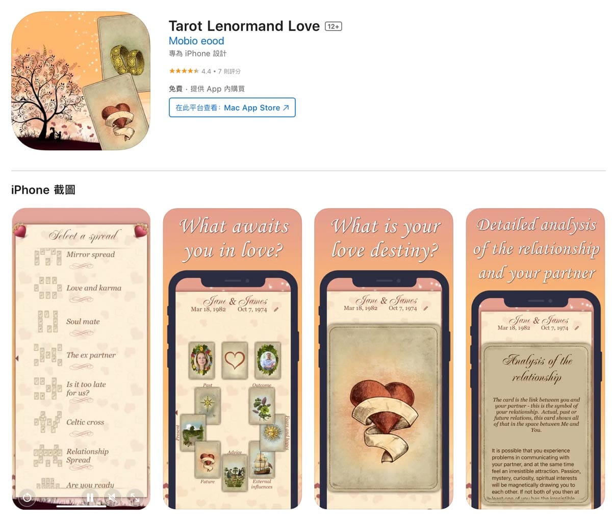 會一直跳出來要你試用購買,但看起來功能蠻多?一開始排列完,你可以點擊卡牌可以看英文的牌意解釋(算了啦~~~哈哈)